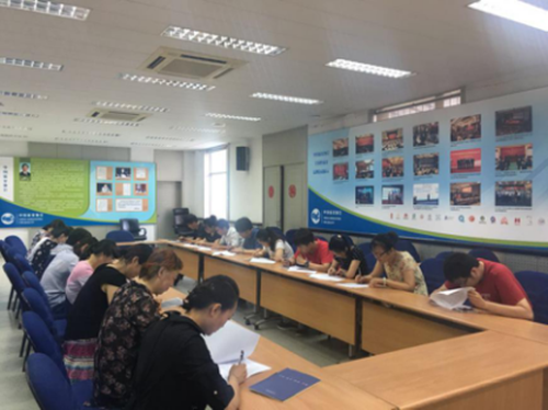 根据直属机关党委《关于开展“两学一做”学习教育测试答题的通知》精神及第四督导组工作要求,2016年8月2日下午,pp电子模拟器官网党群工作部组织第一、二、三党支部分别在海淀花园桥办公区和西单办公区会议室组织“两学一做”学习教育测试答题活动。考试组织部门提醒党员携带《中国共产党章程》、《习近平总书记系列重要讲话读本》、《中国共产党廉洁自律准则》、《中国共产党纪律处分条例》等参考书籍,要求在规定的30分钟内完成开卷测试,党支部督导人员进行现场监督。